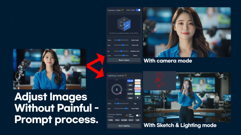 Lighting Dial (라이팅 다이얼) 💡 Shape the mood with cinematic lighting, from Rembrandt to horror shadows.